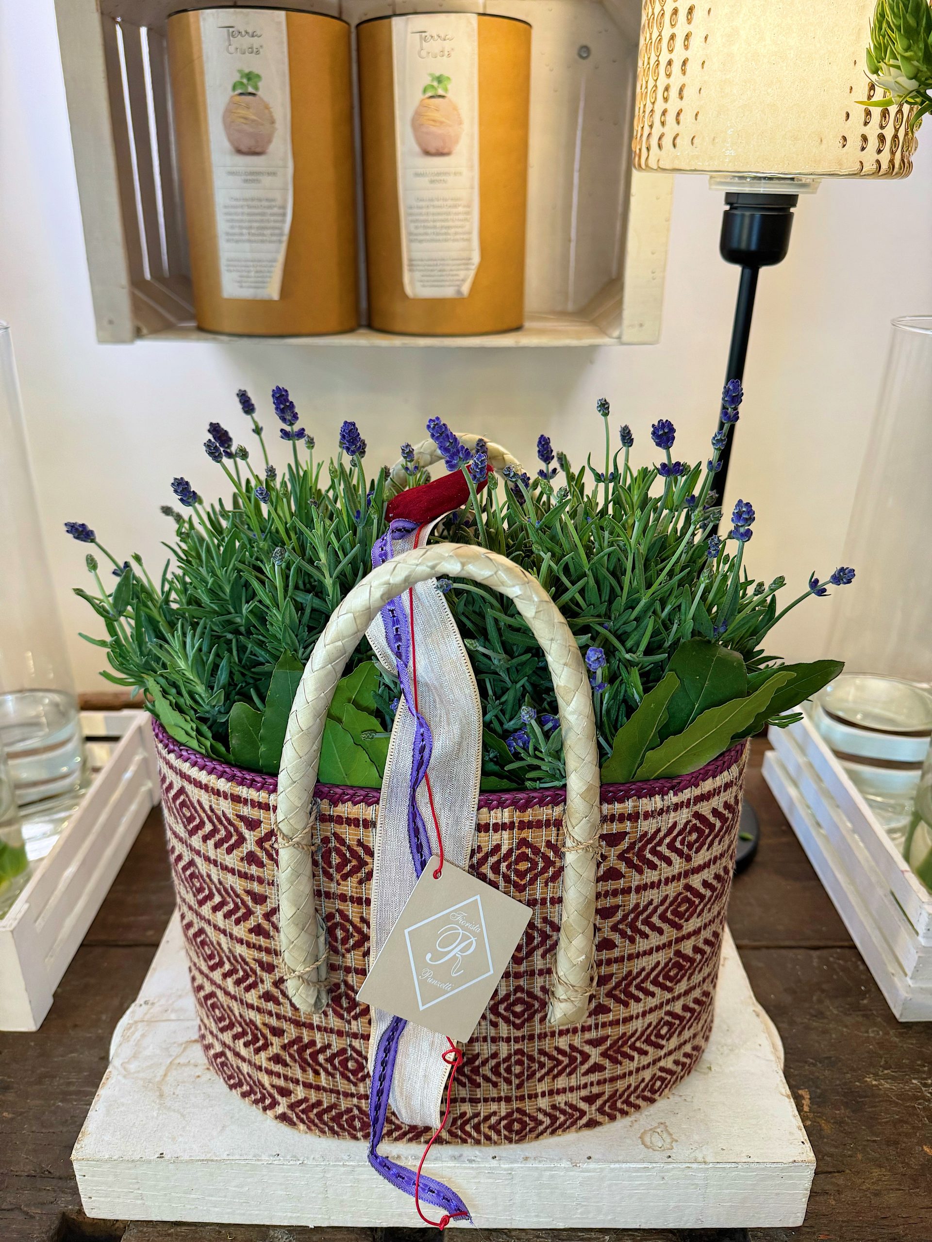 Piantina di Lavanda in borsa decorativa. Tutte le nostre creazioni floreali sono uniche e originali, ecco perché il colore può variare rispetto a quello in foto. La tua composizione sarà bellissima vedrai.